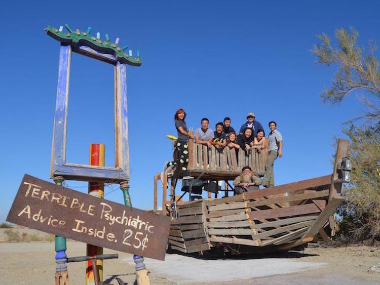 American Thanksgiving. Joshua Tree. OKCupid Stock Photos. Keys View sunset. Pasta by the wall. Lost Horse Trail. Camping atop the mountain. Charades. Freeze dried food. Cactus garden. Tommy self-penetration. Skull Rock. International Banana Museum. Liquor store. Bombay Beach. Salvation Mountain. East Jesus. Helicopter pad. Epic dinner. Uber Man. The Interview. Gun range. Peeing on the statue. Riding the boat through the desert to the hot springs. Hitchhiker.