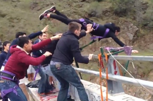 Bungee jumping. Ping pong team. Hotel didn't believe in Foursquare. Roxanne's fail water toss. Broken windows. Super sketch honk horn when ready system. Romain graceful swan dive. 妈妈我爱你. Bear paw throw Joyce. Can we toss the canoe? Devour ALL the crackers. Lower Yosemite Falls. The start of the Yes Group and infinity hugs.