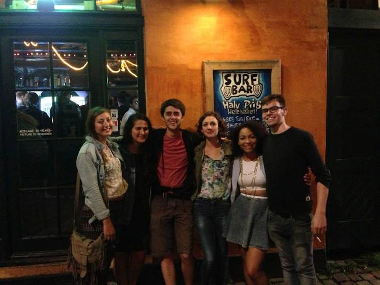Copenhagen. Free dinner. Happy hour. Jamie 22 birthday shots. Heidi's Bar, Foosball, Pub crawl. Danish birthday song. Power Hour. Birthday pie. Green Light District. Laundromat Cafe. Bikes. Little Mermaid. Design Museum. London's a witch on a pig. Umbrella game. Finally good Thai.