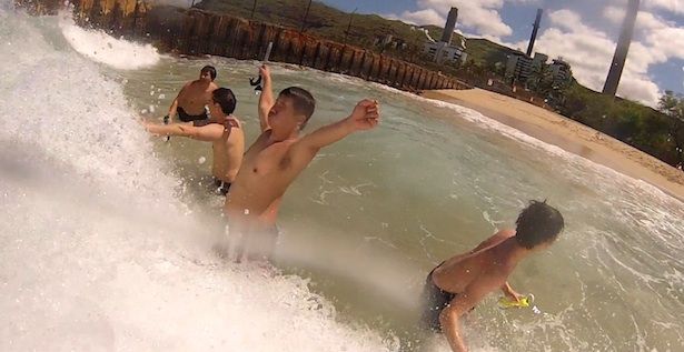 Hawaii day 2. Crepes in morning. Bike rental from Island. Surf, catch critters, tan, sand castles. Bike gang. Diamond Head closed. Gangnam style. Yardhouse. Jon scooter through restaurant. Empty club.