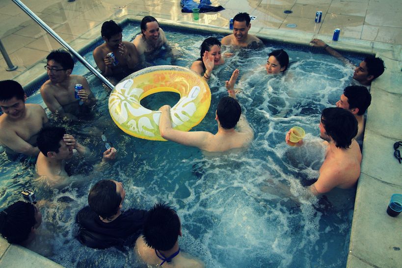 Pool party + BBQ. Hot tub. Volleyball. Stack cup and Settlers at Patrick's. Jetpack.