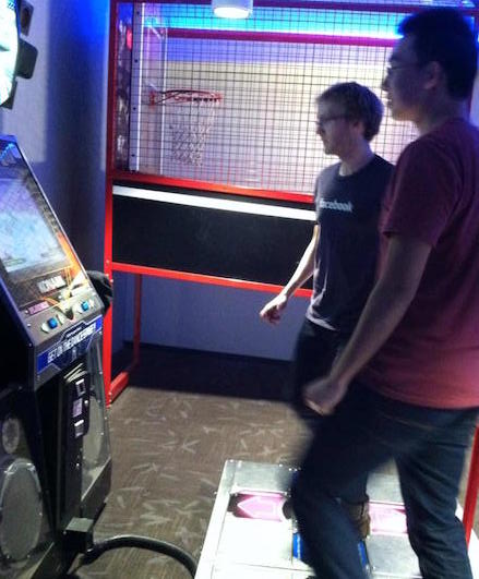 DDR / 'snacks' at Twitter. Weekly run. Thiel house party.