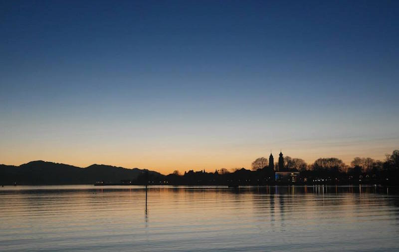 Lindau. Walk to Austria. Rainbow sunset.